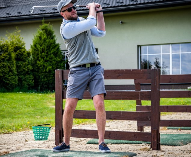 Oddajemy do Państwa dyspozycji 500 metrowy odcinek do ćwiczeń i nauki gry w golfa. Na strzelnicy golfowej – driving range – golfista trenuje uderzenie – zamach golfowy (ang. golf swing) poprzez wybijanie piłek na długie i krótsze odległości – szlifuje technikę gry, celność i umiejętność wybijania piłek różnymi kijami. Odległości zaznaczone są tablicami z dystansem w metrach. Na polu do ćwiczenia celności – puttin green osoba ćwicząca trenuje precyzję uderzenia. Putting green służy do puttowania (wbijania piłki do dołka) odpowiednim kijem typu putter – celność z jak najmniejszą ilością uderzeń.