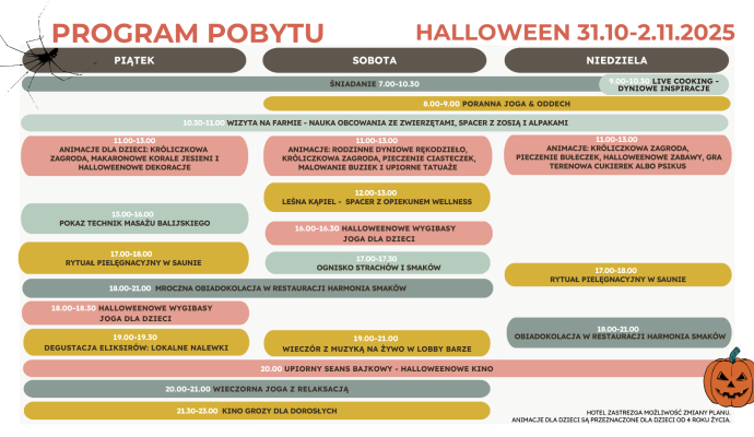 11.00–13.00 Animacje dla dzieci: pieczenie bułeczek, Halloweenowe zabawy, gra terenowa cukierek albo psikus